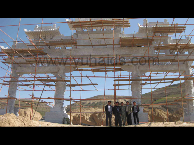 這是南京德明園大理石石雕牌坊應用案例。整個牌坊以大理石雕刻制作而成,主要以龍紋作為裝飾圖案,包括柱體和牌坊其他部件,大都可以看到龍的形態。