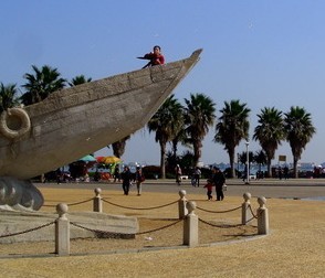 筆者在霞山漁港公園看到,一群貪玩的小孩子來到公園廣場,攀爬上漁港公園主題雕塑“海之戀”,并在“船頭”高處蹦蹦跳跳,在雕塑船上任意跑動。廣場上是硬底地面,雕塑石船的船頭離地面約有三米高,雕塑石船上周邊沒有護欄,小孩在上面跑動,很容易跌落。